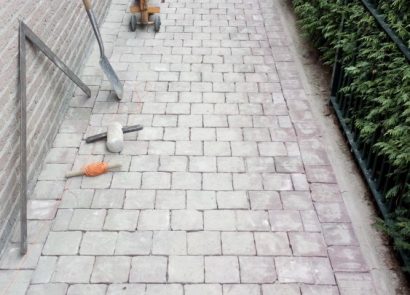 Een variatie op de welbekende “kinderkoppen” zijn de platines. Het verschil is dat platines aan de bovenzijde mooi afgeplat zijn waardoor ze comfortabeler te belopen zijn. Bij deze klant hebben wij de oprit en het pad rond het huis uitgevoerd met de beige gres-variant van de platine.